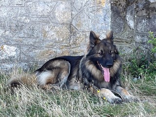 Hugo is een outcross van onze Shiloh Shepherd. Een zogenaamde F1 pup, 50% Shiloh, 25% koningspoedel en 25% wetterhoun. Hugo is inmiddels 7 jaar en een mensen hond: sociaal, erg enthousiast, gek op aandacht en met name gericht op de hand die hem de hele dag wil kriebelen. Hij kan heel goed een tijd alleen zijn. Hij luistert heel goed en vindt het fijn om om samen te werken. Hugo is onzeker in voor hem onbekende situaties. Dat is onstaan na het overlijden van onze Shiloh Shepherd Ziva. Ze waren 6 jaar lang 2 schaduwen. Na het overlijden van onze Ziva was Hugo zijn steun en toeverlaat kwijt en moest hij op eigen benen leren staan. Hugo is inmiddels weer een heerlijk stabiele hond. We gaan spannende dingen zeker niet uit de weg maar geven Hugo de bescherming die hij soms nog nodig heeft. Hij doet het heel goed in een roedel en voelt zich erg veilig tussen zijn roedel genoten.